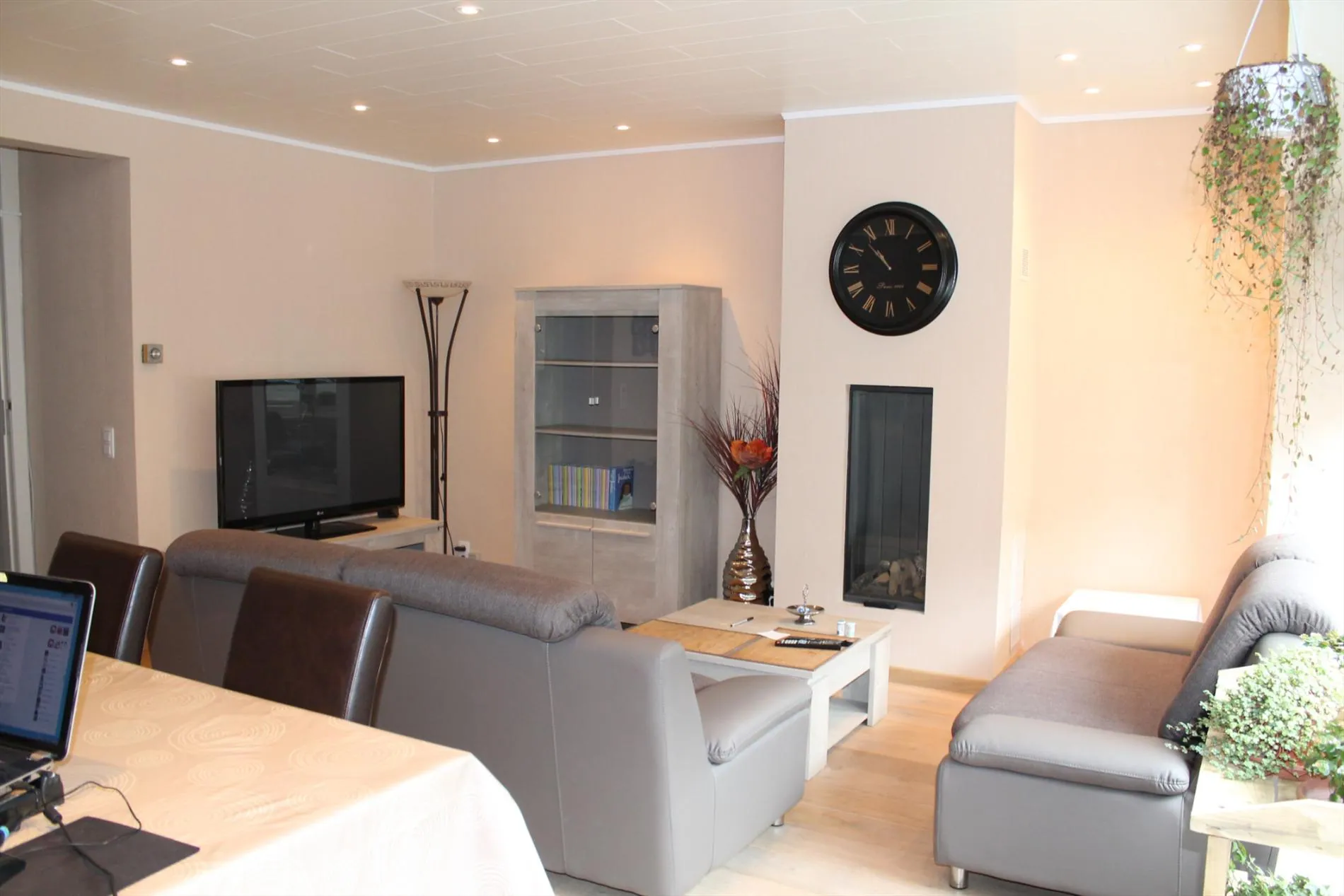 Indeling: Inkom, woonkamer met cassettehaard, keuken ingericht met toestellen, badkamer met douche en wastafel, toilet apart, 2 slaapkamers met ingemaakte kleerkasten, groot zonneterras.